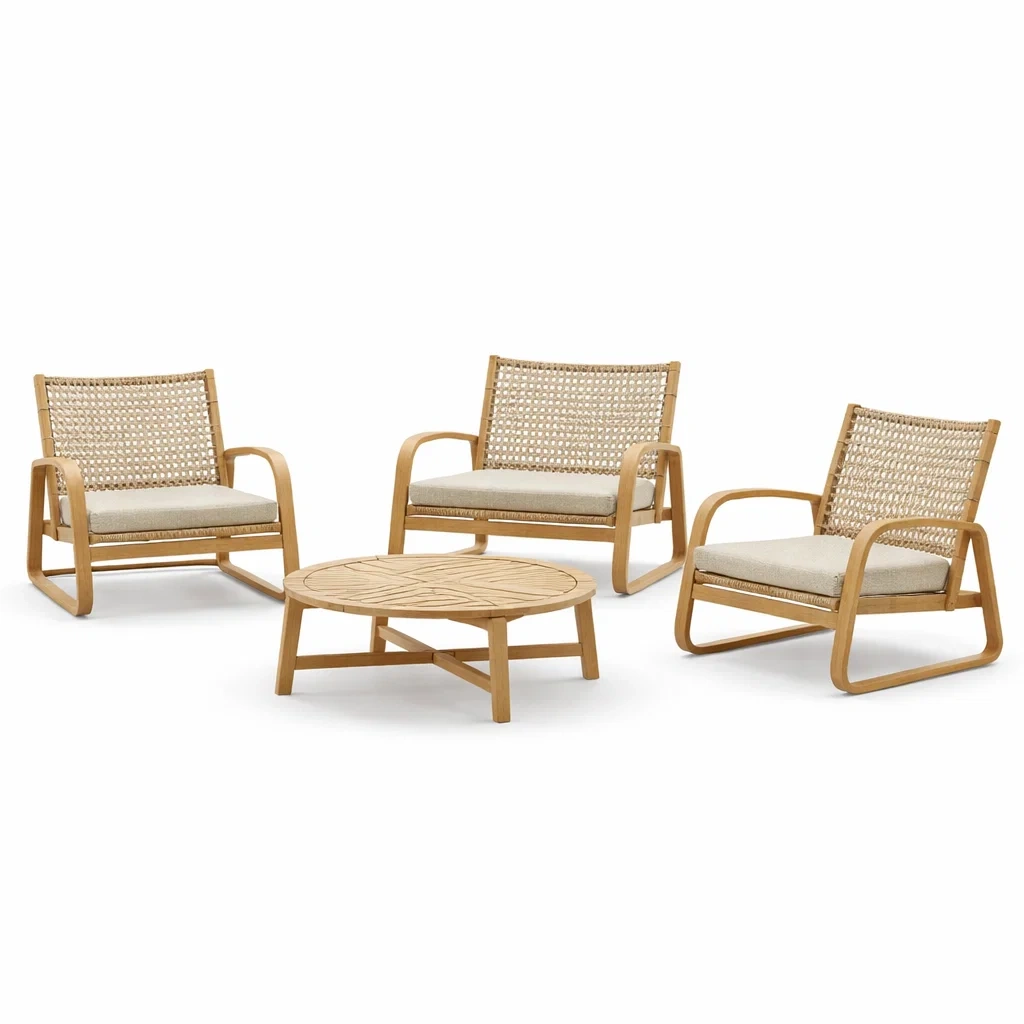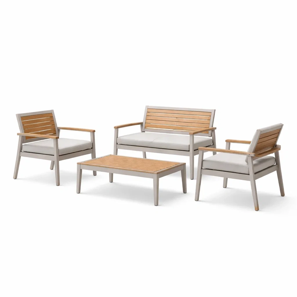 Set da conversazione da giardino 4 pezzi in alluminio e legno di acacia grigio/naturale