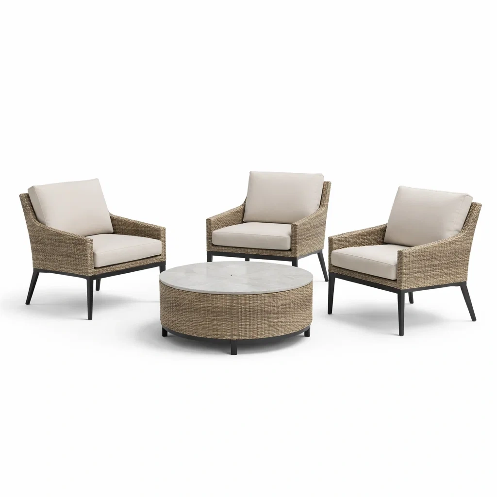 Set da conversazione in rattan con 3 poltrone e tavolino in marmo