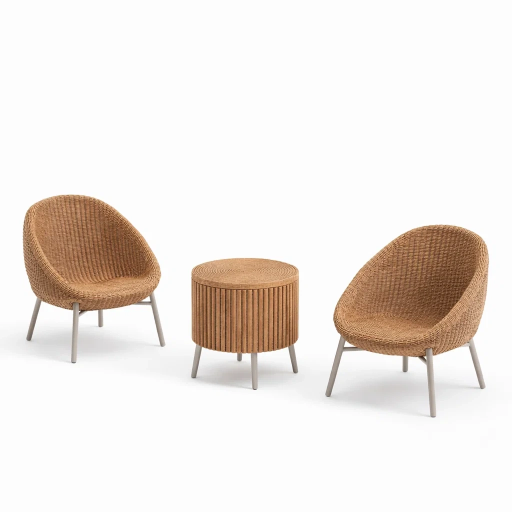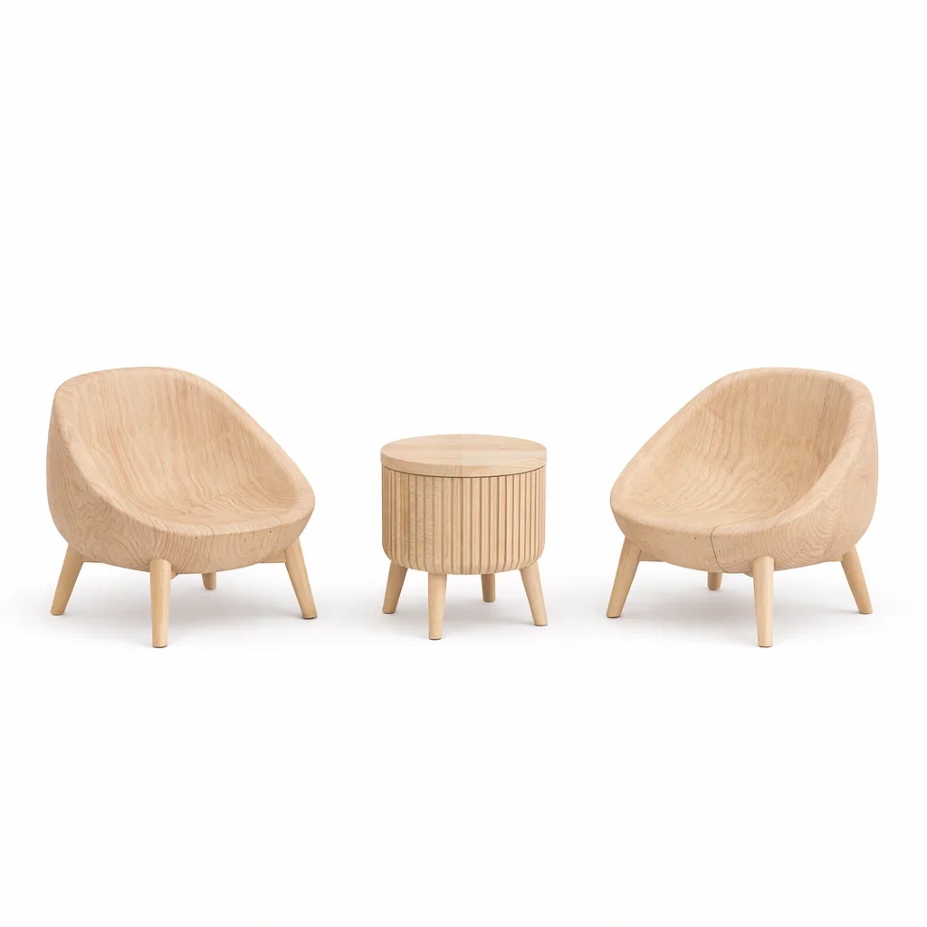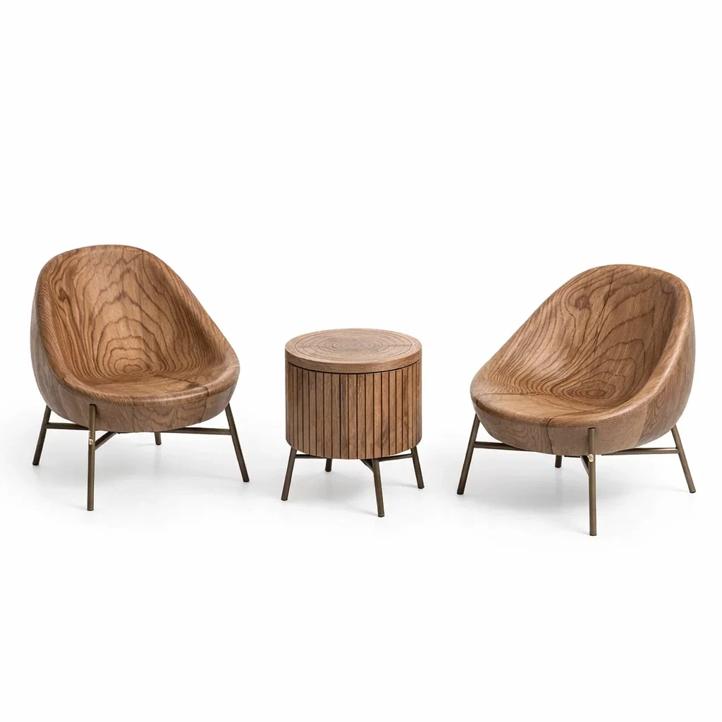 Set da relax piccolo in Legno con Due Poltrone e Tavolino Rotondo