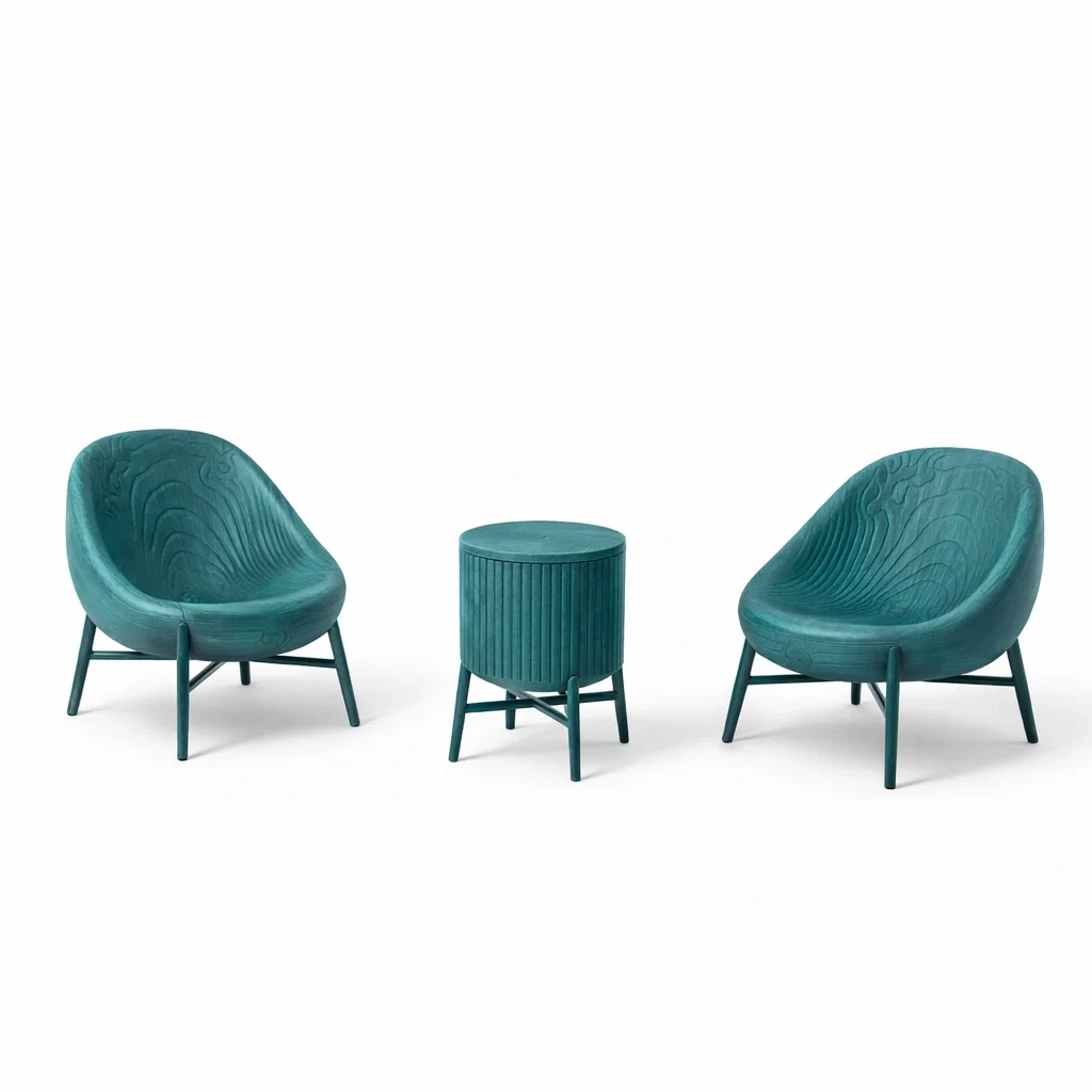 Set da relax piccolo con Due Poltrone e Tavolino Rotondo in Legno Verde