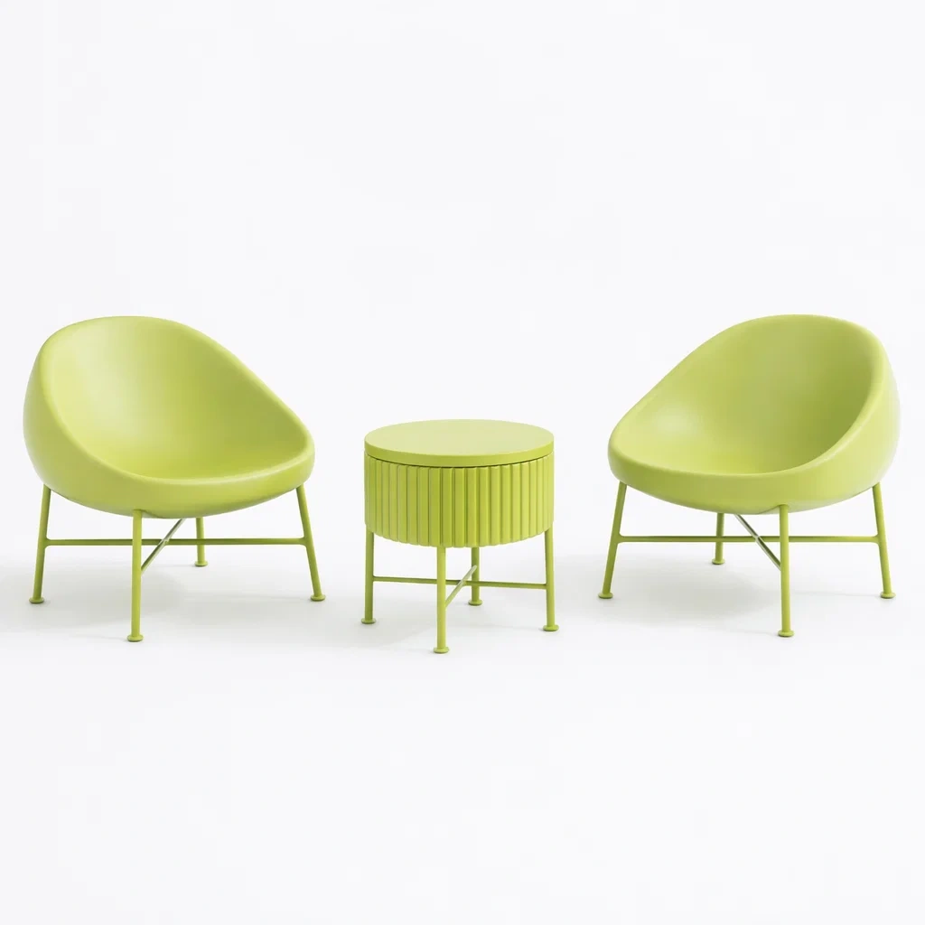 Set da relax piccolo con Due Poltrone e Tavolino in Metallo e Polipropilene Verde