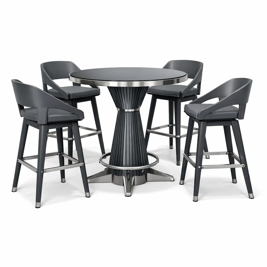 Set tavolo e sgabelli da bar rotondo in Metallo con Quattro Sgabelli Grigio Scuro