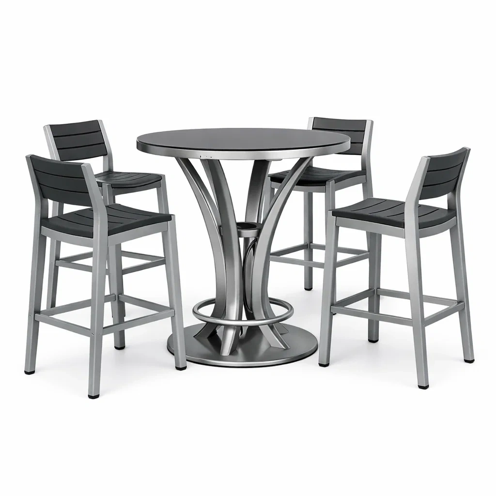 Set tavolo e sgabelli da bar in Alluminio e Polipropilene Nero